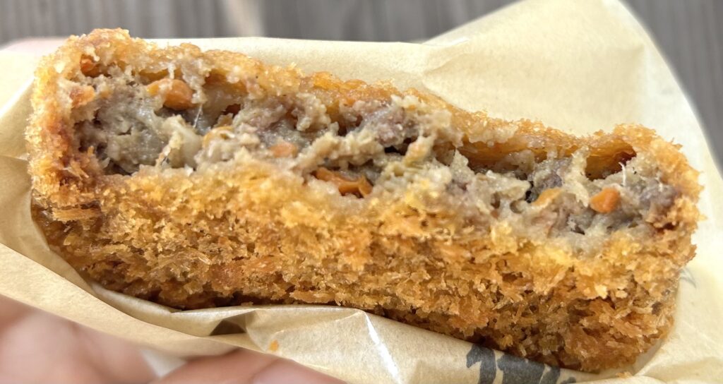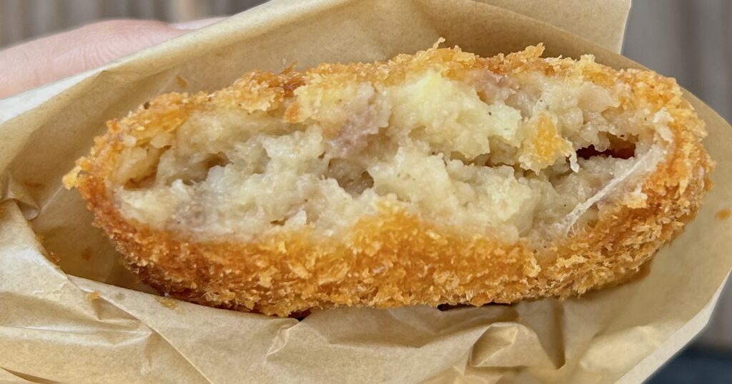 お店に到着するとすでに、大行列が!! 今回は、コロッケとメンチカツを両方購入しました。