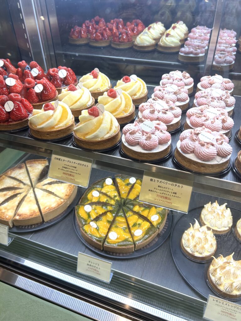 キラキラと輝くフルーツタルトが沢山並んでおり、見ているだけで幸せな気持ちになりますね!