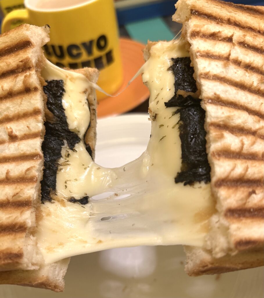 トーストがこんがりと焼き色が付いていて、チーズがたっぷりで美味しそうです♪